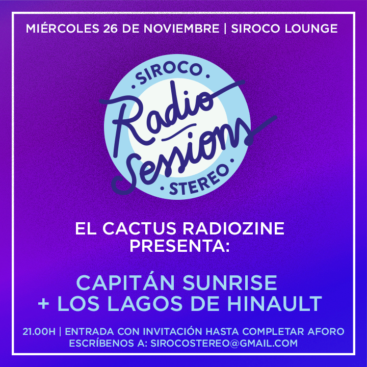 Repasamos la agenda de esta semana, completísima, y de la que destacamos, faltaría más, nuestra Siroco Stereo Radio Session, el miércoles 26 de noviembre con Los Lagos de Hinault y Capitán Sunrise.